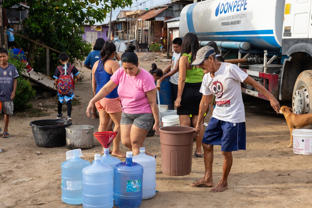 A pesar de estar rodeada de ríos majestuosos, la situación en Iquitos es alarmante: muchas viviendas carecen de acceso continuo a agua potable (el 60,3% de la población no tiene acceso a este recurso), obligando a las familias a extraer agua de ríos contaminados.